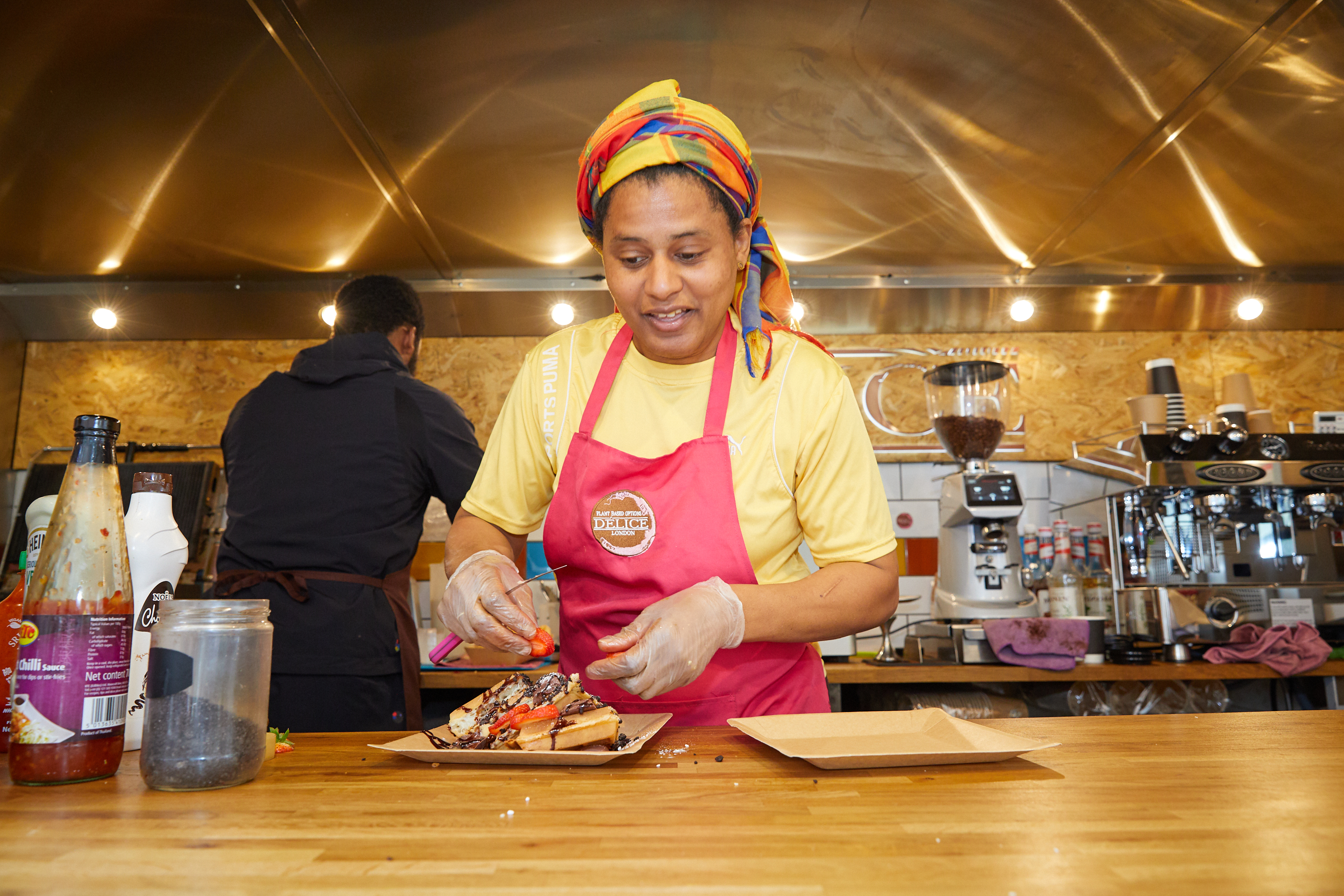 Two women working on fashion dummy
