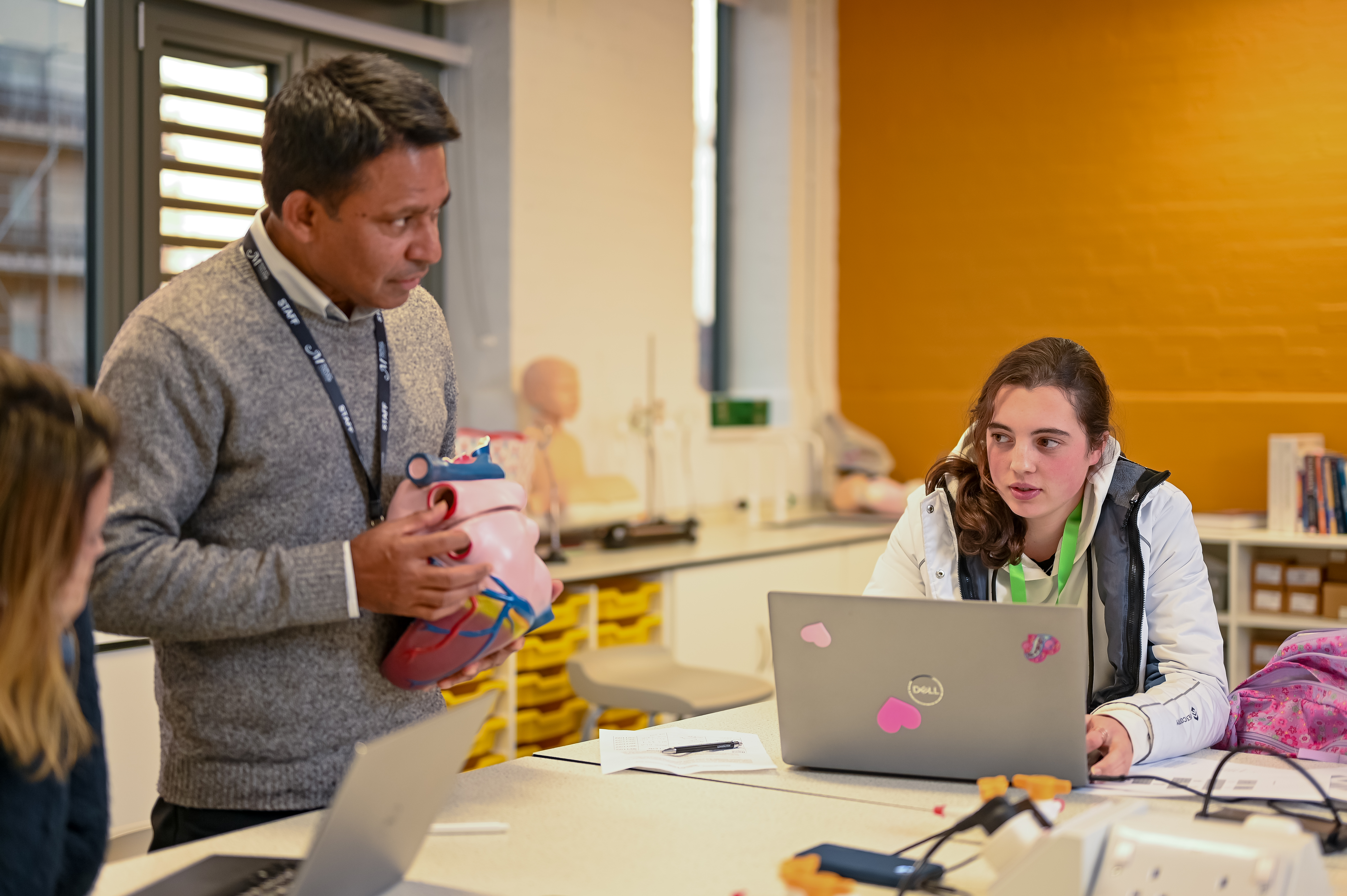 Student and teacher talking in a classroom at Morley College North Kensington